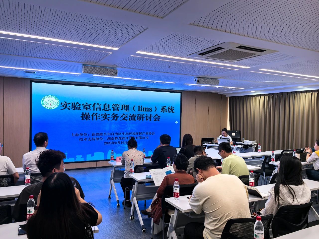 2025年8月16日,由新疆維吾爾自治區(qū)生態(tài)環(huán)境保護(hù)產(chǎn)業(yè)協(xié)會(以下簡稱 “協(xié)會”)主辦,湖南舞龍軟件開發(fā)有限公司提供專業(yè)技術(shù)支持的實驗室信息管理系統(tǒng)(LIMS)系統(tǒng)的操作實務(wù)研討會,以“線上和線下”結(jié)合形式順利舉辦。本次研討會吸引全疆各地會員單位參與,其中線上參會達(dá) 350余人次,線下參會35人,與會人員共同聚焦LIMS系統(tǒng)應(yīng)用為新疆生態(tài)環(huán)境保護(hù)產(chǎn)業(yè)